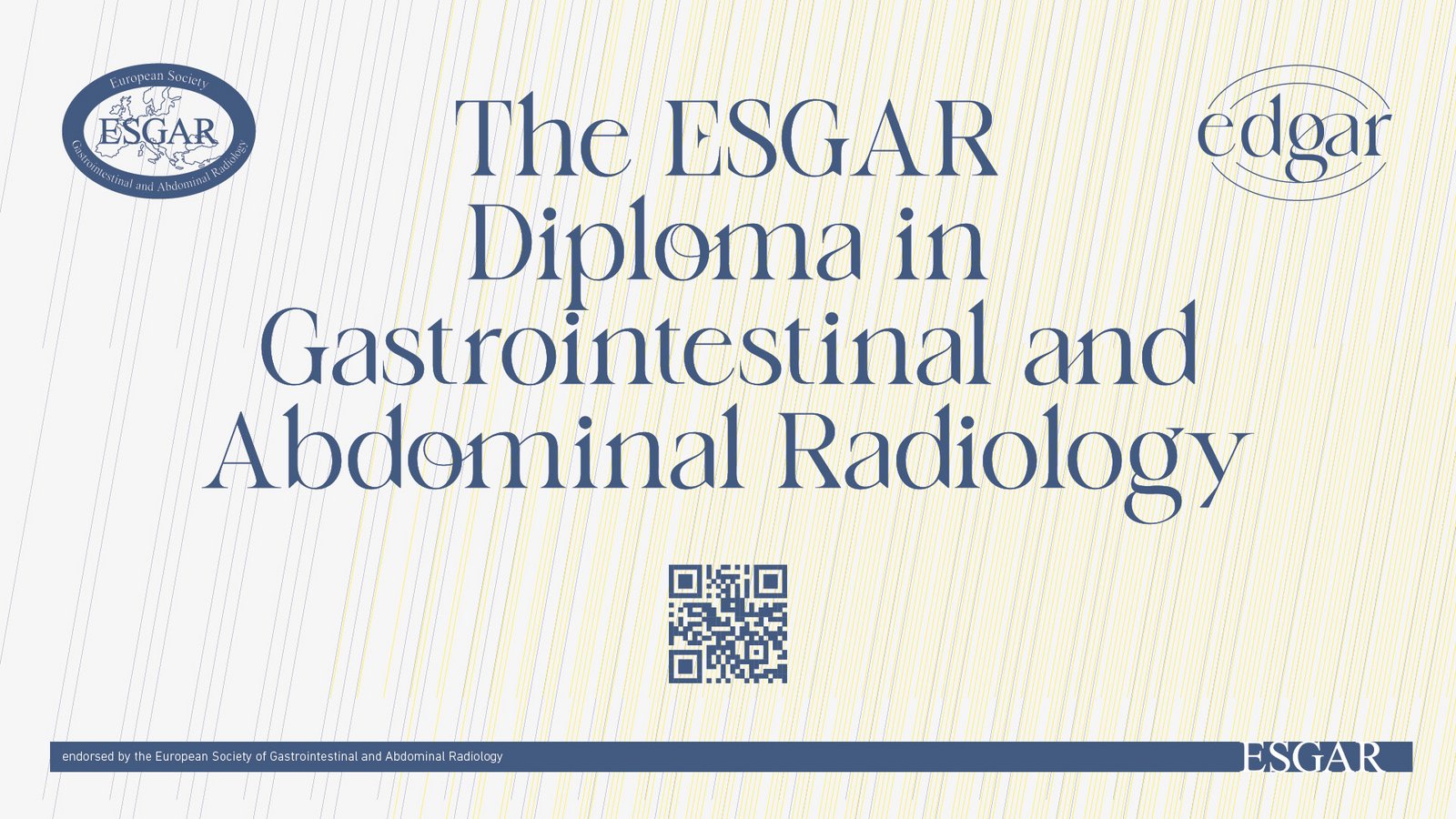 The ESGAR diploma offers a recognition of expertise at a European level for radiologists who have reached a subspecialised level of knowledge in abdominal radiology and who are keen to maintain this level through continuous education and involvement in the field, and by taking the examination. The examination objectively verifies that radiologists possess the required expert knowledge, skills and competences at the end of their specific gastrointestinal and abdominal radiology training. EDGAR is endorsed by the European Society of Radiology (ESR) and equals a final Level III subspecialty examination.