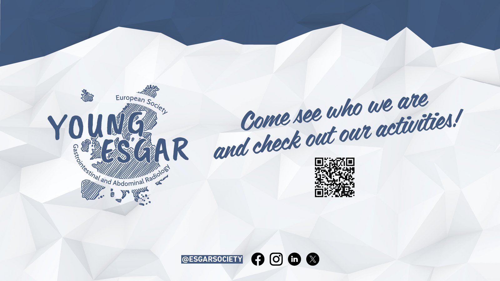 “Young ESGAR (YE)”, an exciting initiative to promote active participation of young members within the vibrant ESGAR community. The main goal of Young ESGAR is to generate a forum of enthusiastic young members to represent the interests of young residents, radiologists and researchers within ESGAR. The aim is to create an informal and interactive platform to network, exchange ideas and help shape the future of ESGAR.